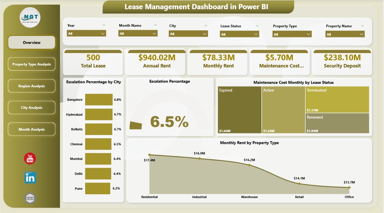 🔹 📊 Executive Overview – Instantly view key lease KPIs with dynamic cards and visuals.