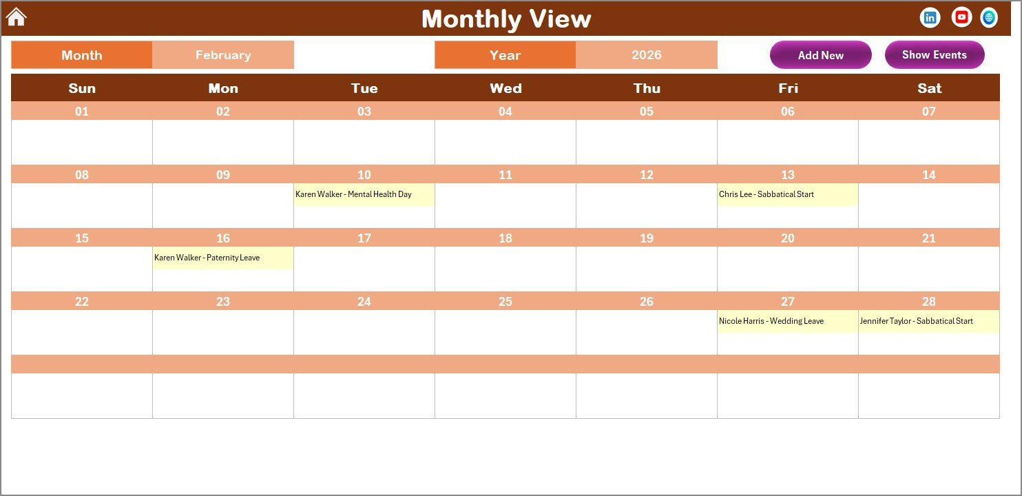 - 🗓️ Monthly View Sheet: Single-month calendar with event indicators.