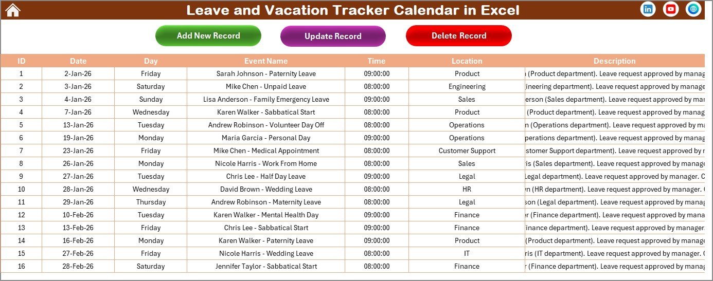 Each sheet is designed to make leave and vacation tracking intuitive, visually appealing, and highly customizable to fit your unique requirements.