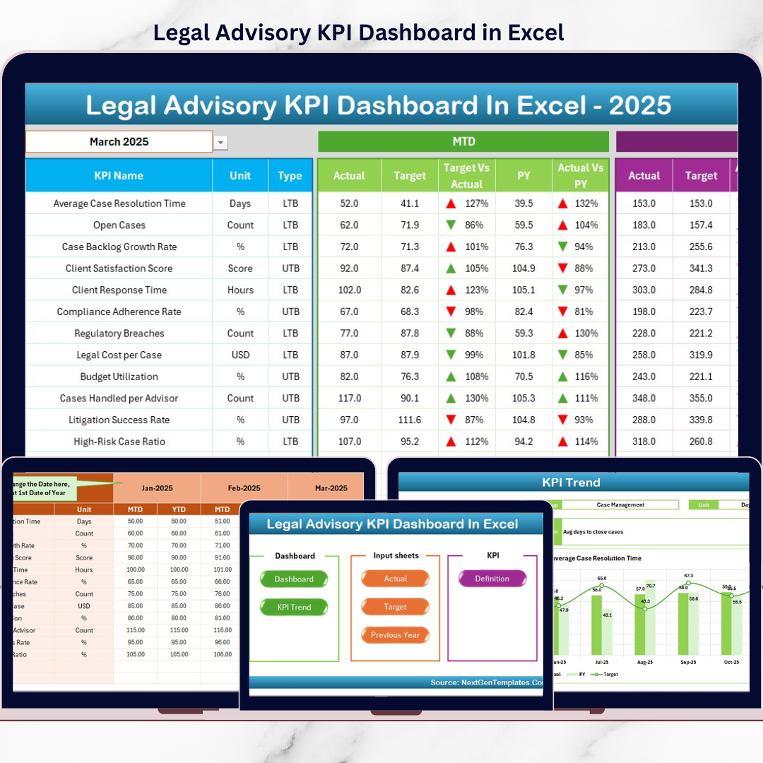 ## What’s Inside the Legal Advisory KPI Dashboard in Excel 📂