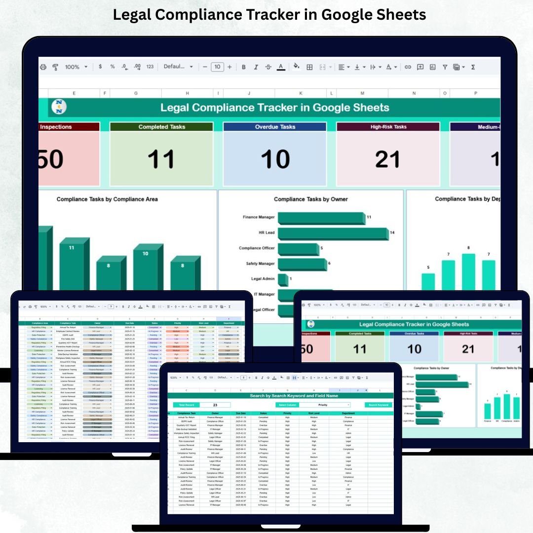 Legal Compliance Tracker in Google Sheets is essential for every organization, regardless of size or industry. Companies must adhere to laws, regulatory standards, internal policies, audits, and industry-specific requirements. But managing compliance manually—especially when tasks involve multiple owners, departments, and deadlines—quickly becomes overwhelming. A missed compliance date can lead to penalties, legal trouble, reputational damage, and operational risk. That’s why the Legal Compliance Tracker in Google Sheets is a game-changing tool for modern businesses.Legal Compliance Tracker in Google Sheets