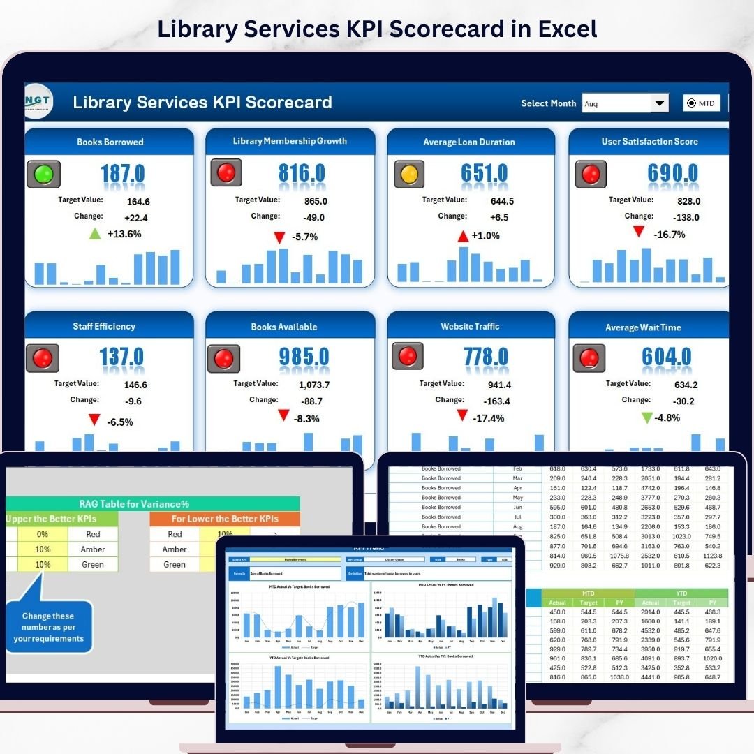 Library Services KPI Scorecard in ExcelLibrary Services KPI Scorecard in Excel
