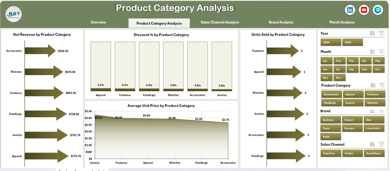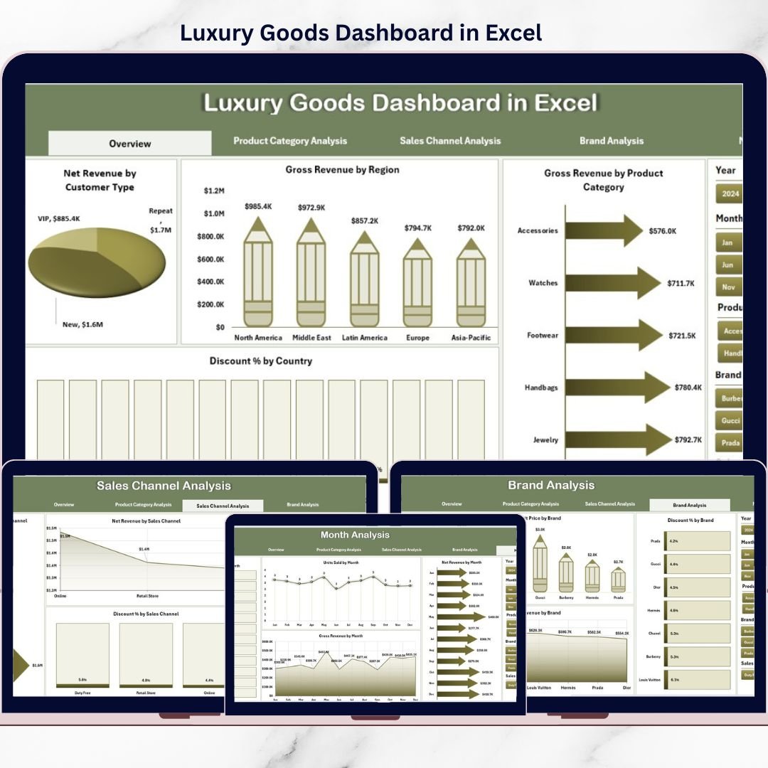 ## What’s Inside the Luxury Goods Dashboard in Excel 📂