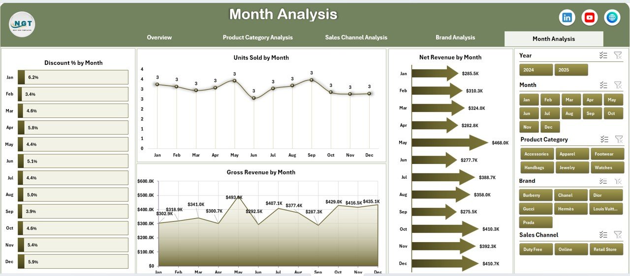 Built entirely in Excel, this dashboard combines simplicity, flexibility, and executive-level analytics, making it ideal for luxury brands that demand clarity without complexity.