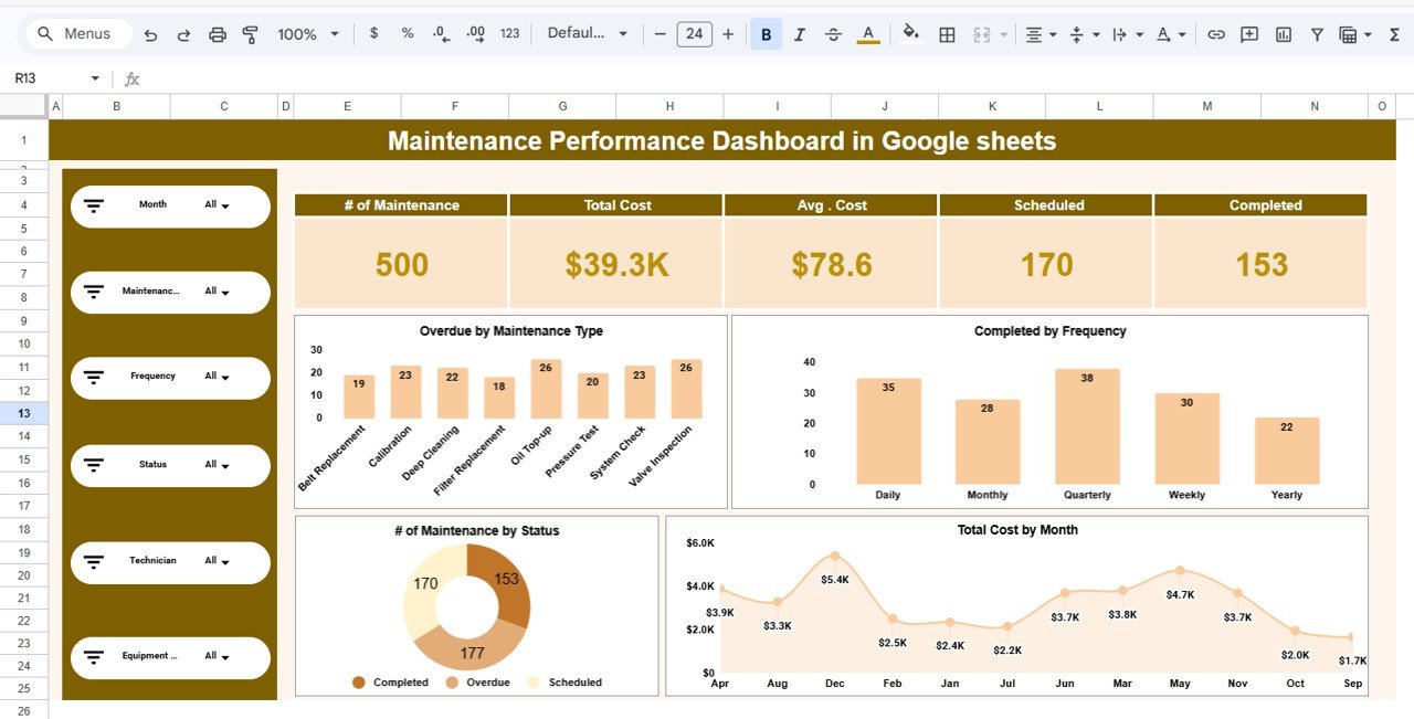 Maintenance Performance Dashboard in Google SheetsMaintenance Performance Dashboard in Google Sheets