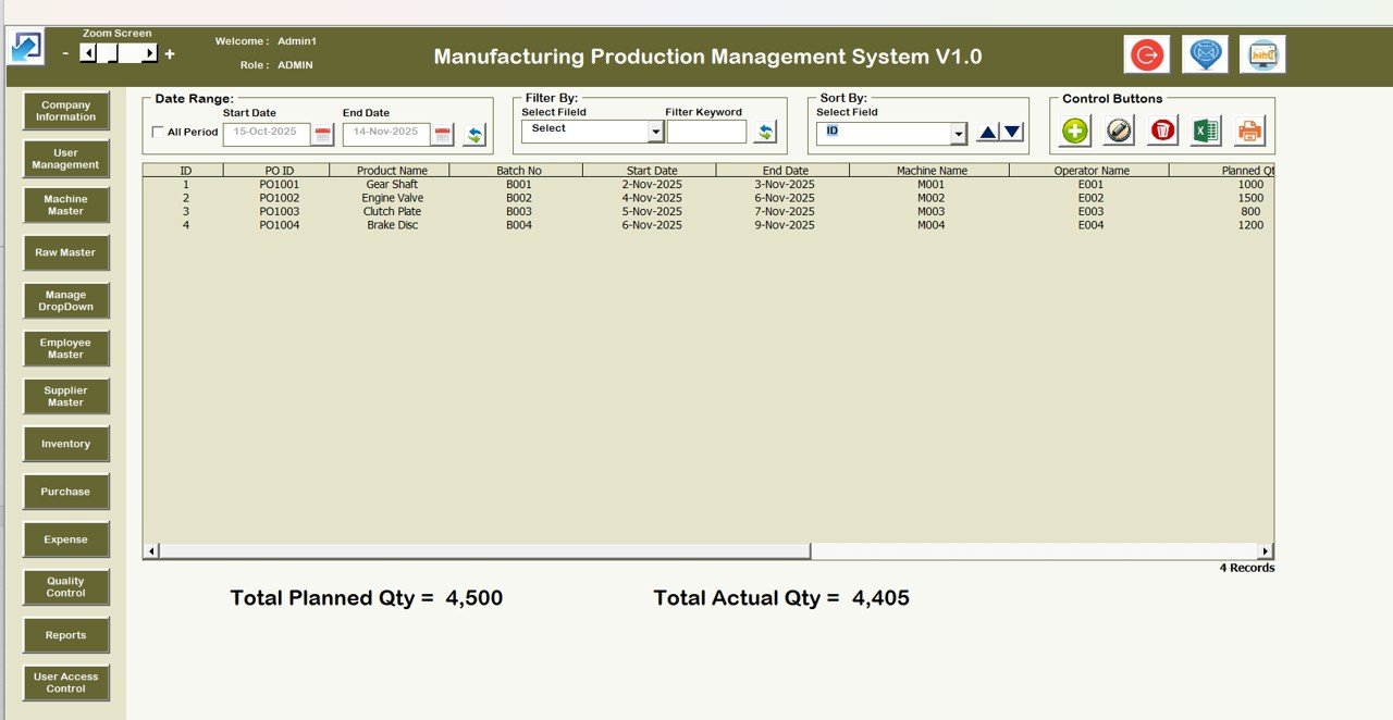 The Manufacturing Production Management System V1.0 transforms production tracking into a fast, accurate, and organized workflow — giving manufacturing companies a competitive operational advantage. 🚀
