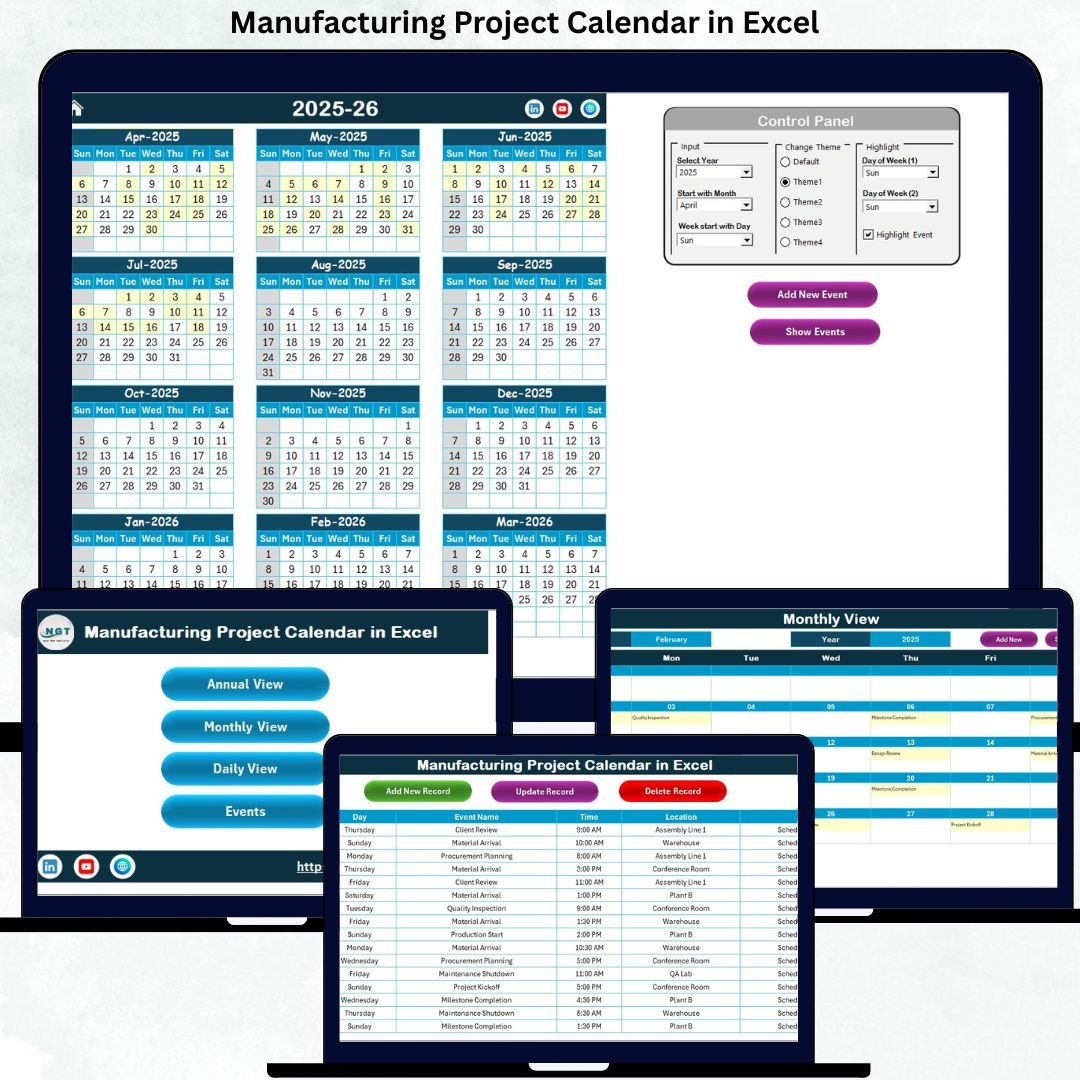 In today’s competitive manufacturing environment, project delays are costly, coordination gaps are risky, and missed milestones directly impact productivity. Managing production schedules, maintenance activities, audits, and project events using scattered spreadsheets or emails often leads to confusion and errors. That is exactly why the Manufacturing Project Calendar in Excel is a must-have planning tool for modern manufacturing teams 🚀.
