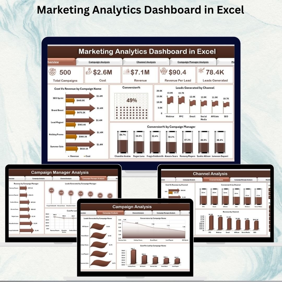 In the modern digital landscape, marketing success depends on data-driven decision-making. Guesswork is no longer enough — businesses need clear insights into campaign performance, channel effectiveness, and ROI. That’s why we built the Marketing Analytics Dashboard in Excel, a cost-effective and powerful solution that turns raw marketing data into actionable insights.