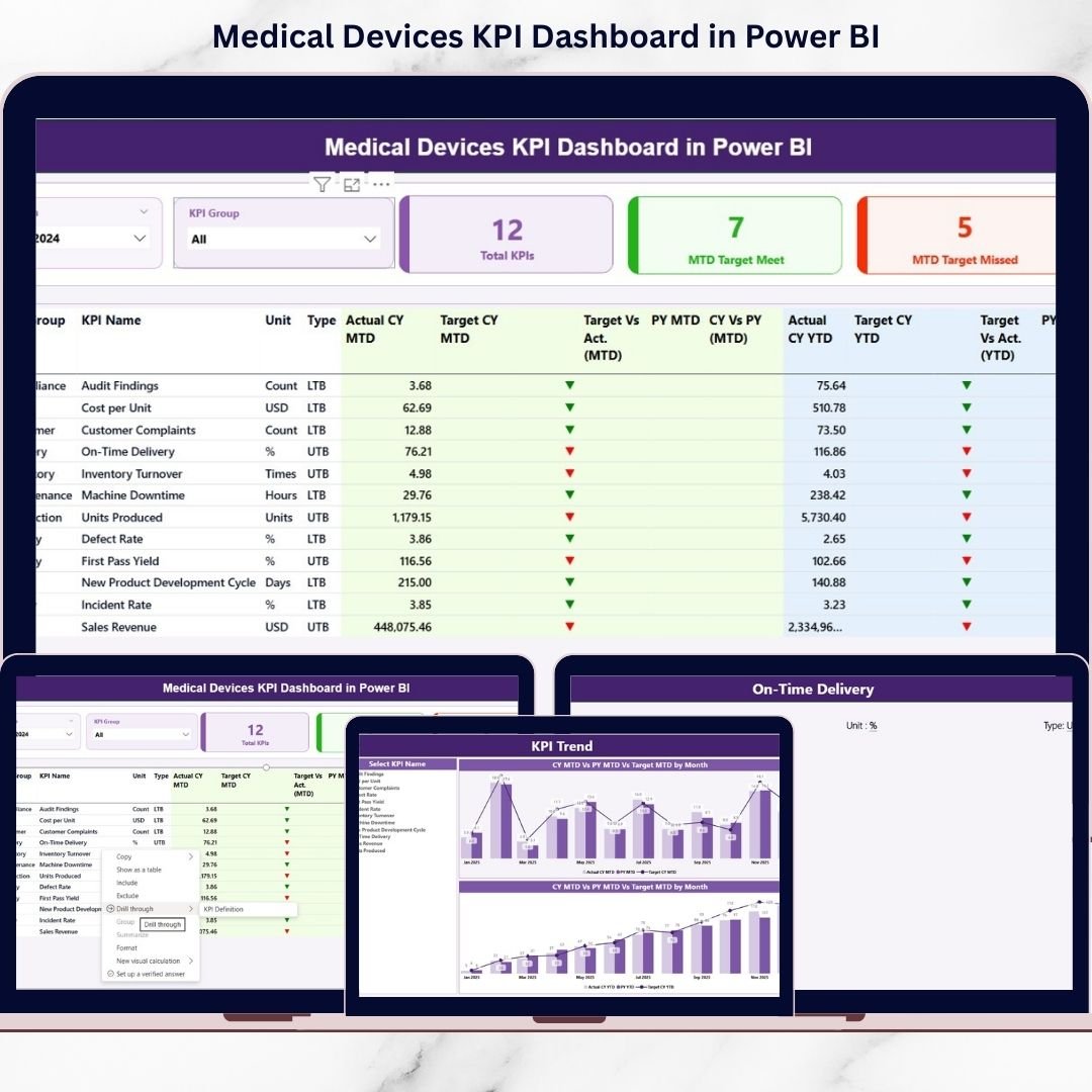 📦 What’s Inside the Medical Devices KPI Dashboard in Power BI