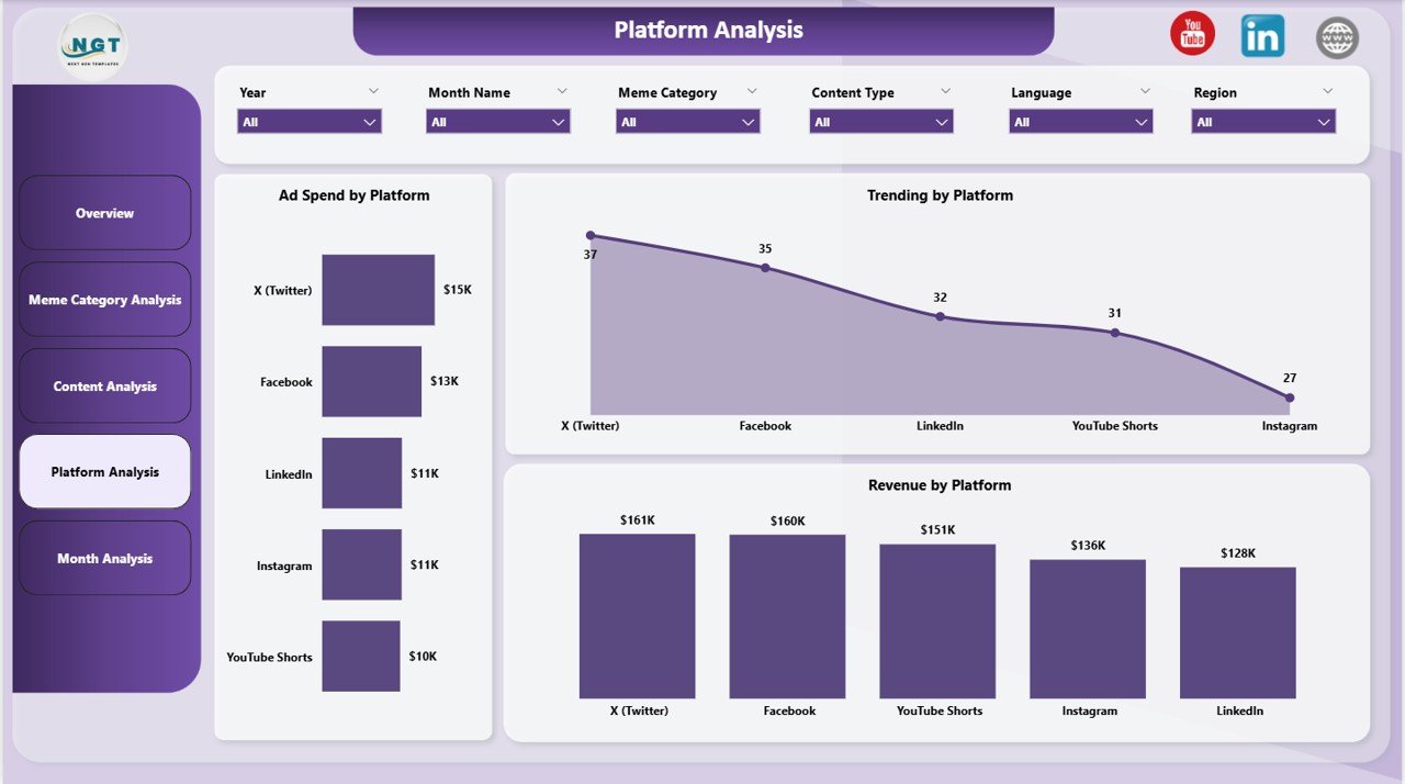 However, managing the performance of viral content campaigns can quickly become complicated. Marketing teams often publish dozens or even hundreds of posts across multiple platforms, topics, and languages. Meme and Viral Content Creation Dashboard in Power BI Without a structured analytics system, it becomes difficult to track which content performs best, which platforms generate the highest revenue, and how advertising spending affects profitability.