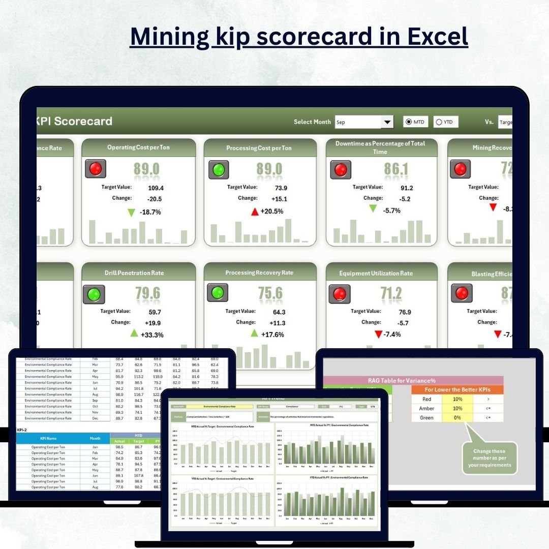 In the dynamic world of mining, data is gold ⛏️ — and managing it efficiently is the key to success. The Mining KPI Scorecard in Excel is your ultimate tool to monitor performance, optimize productivity, and enhance safety — all in one place! This ready-to-use, interactive scorecard helps mining managers make data-driven decisions without the need for complex software.