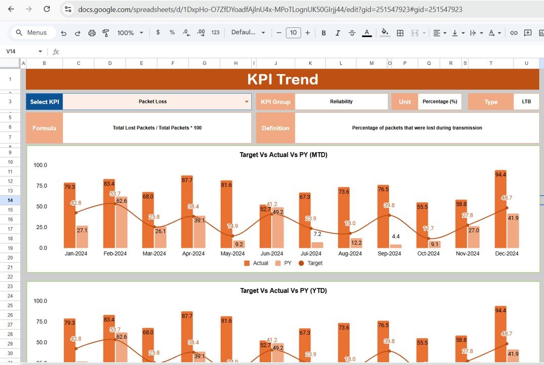 📂 What’s Inside the Network Performance KPI Dashboard in Google Sheets