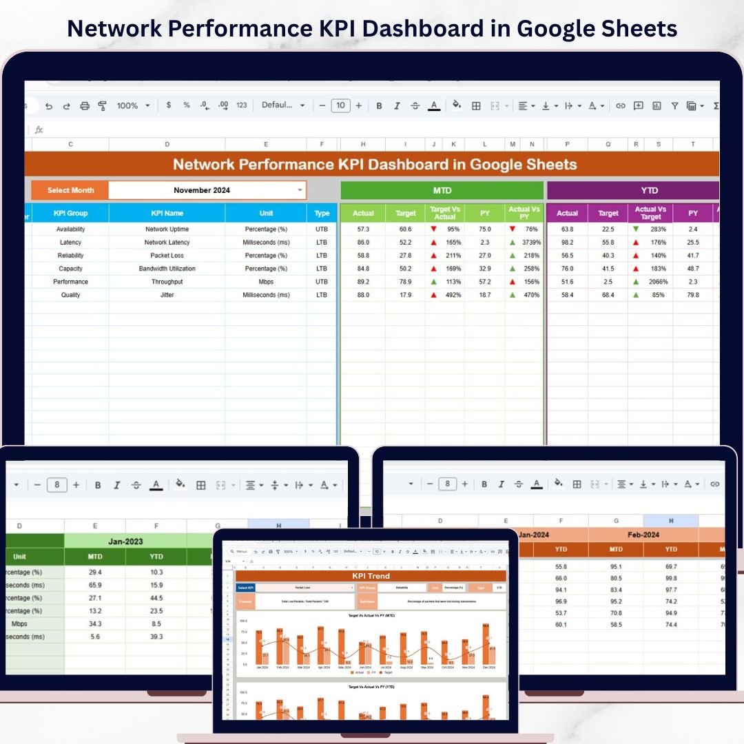 This powerful, ready-to-use Google Sheets dashboard is designed for IT teams, network engineers, and analysts who want to monitor, analyze, and optimize network performance efficiently. Instead of dealing with scattered data and manual reporting, this dashboard centralizes all your key performance indicators (KPIs) into one interactive and cloud-based platform.