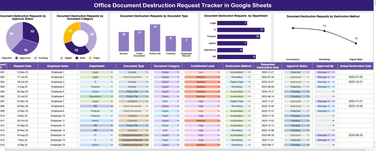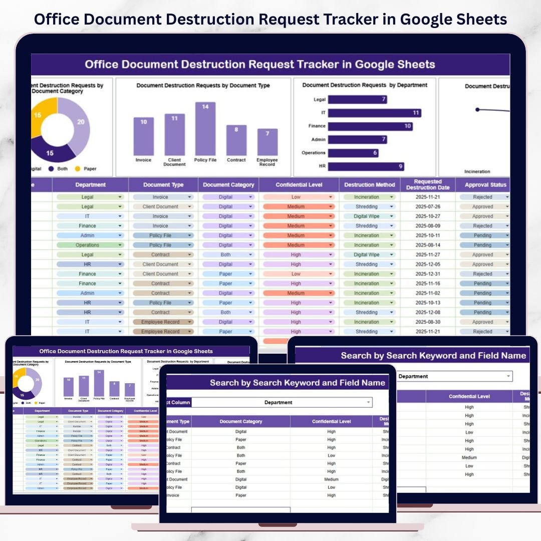 Every organization handles sensitive documents—employee records, financial files, legal papers, contracts, and confidential reports. Over time, these documents reach the end of their retention period and must be destroyed securely. However, when document destruction requests are managed through emails, chats, or informal spreadsheets, organizations face serious risks related to data privacy, regulatory compliance, and audit failures.Office Document Destruction Request Tracker in Google Sheets