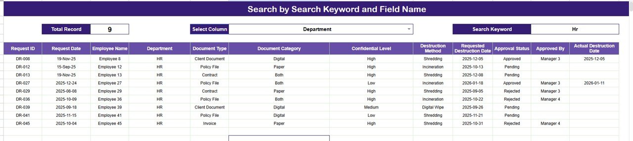 📦 What’s Inside the Office Document Destruction Request Tracker