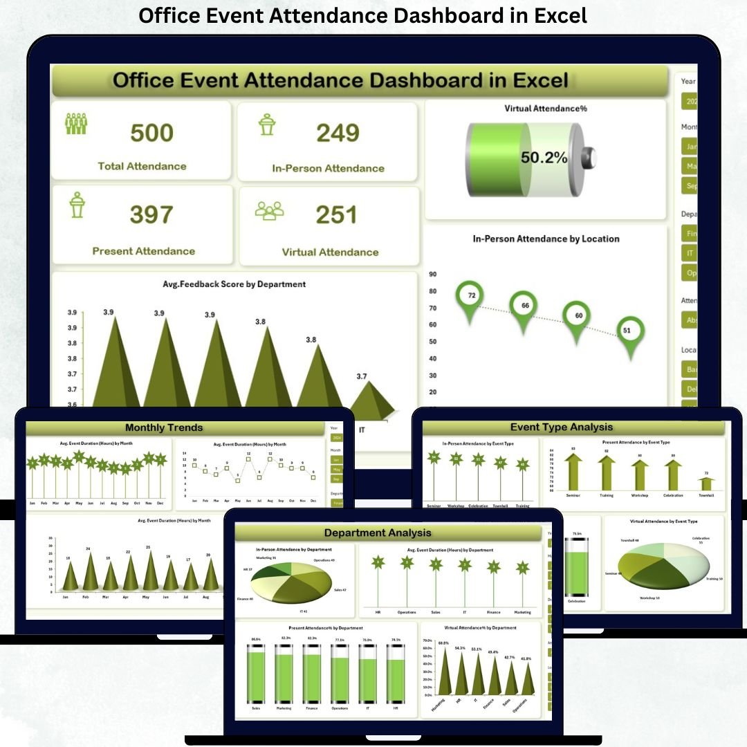 Managing office events today goes far beyond sending calendar invites or marking attendance in sheets. Organizations now need clear visibility into who attends, how they attend, how engaged they are, and what feedback they share. That is exactly where the Office Event Attendance Dashboard in Excel becomes a powerful, practical, and business-ready solution.