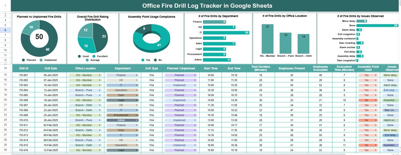 That is exactly why the Office Fire Drill Log Tracker in Google Sheets becomes a powerful and practical solution.