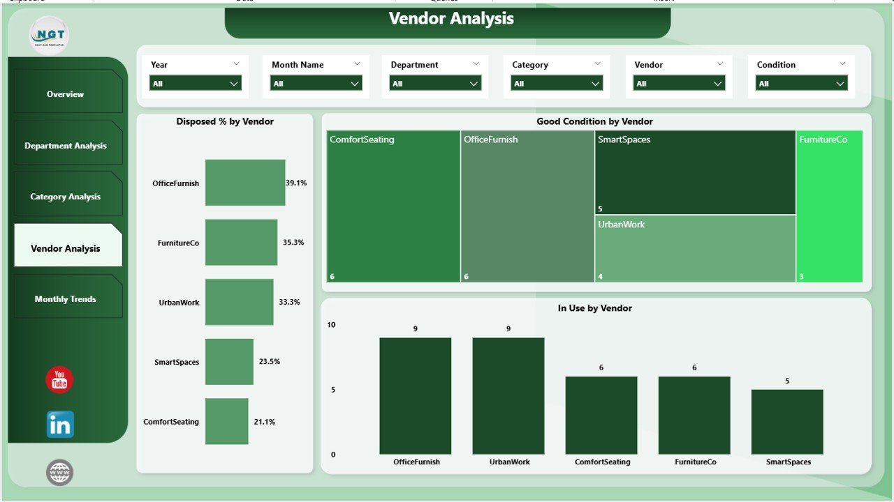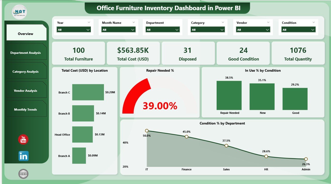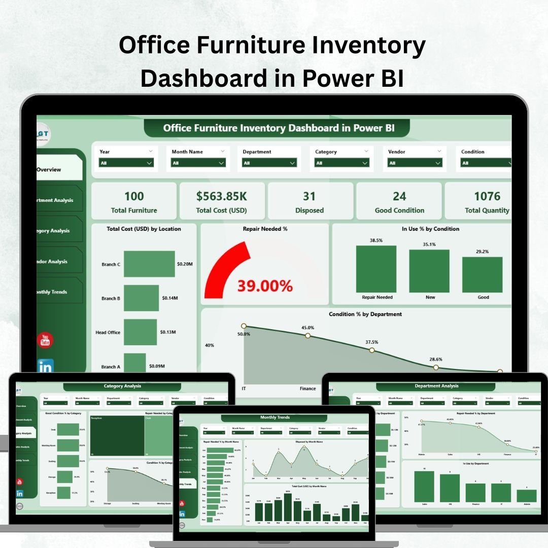 Unlike static spreadsheets, this Power BI dashboard is interactive, automated, and visually powerful. It ensures decision-makers always have accurate, real-time insights on furniture costs, usage, repairs, and vendor performance. From forecasting budgets to cutting waste, this tool transforms asset management into a data-driven process.