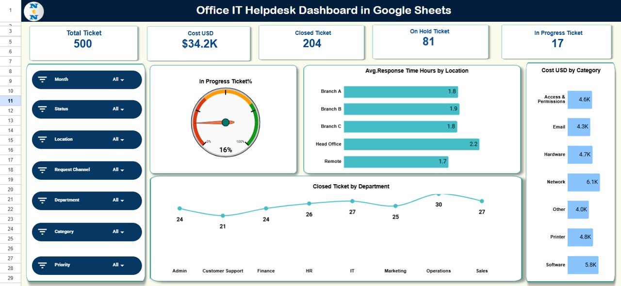 That is exactly why the Office IT Helpdesk Dashboard in Google Sheets becomes a powerful and practical solution.