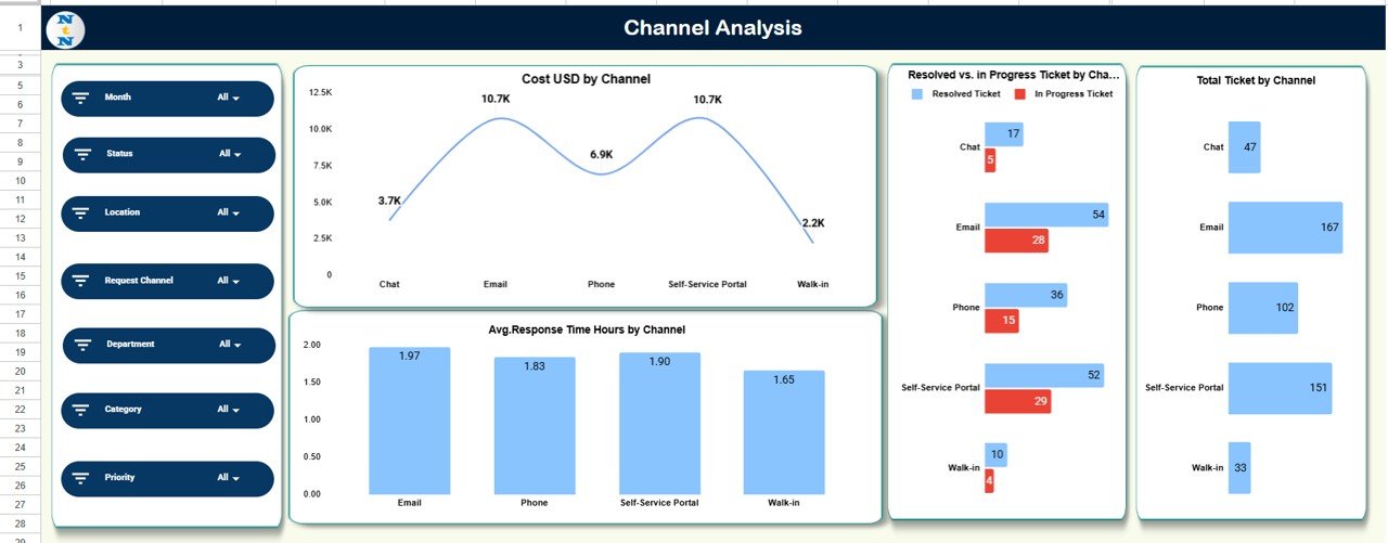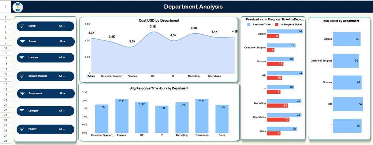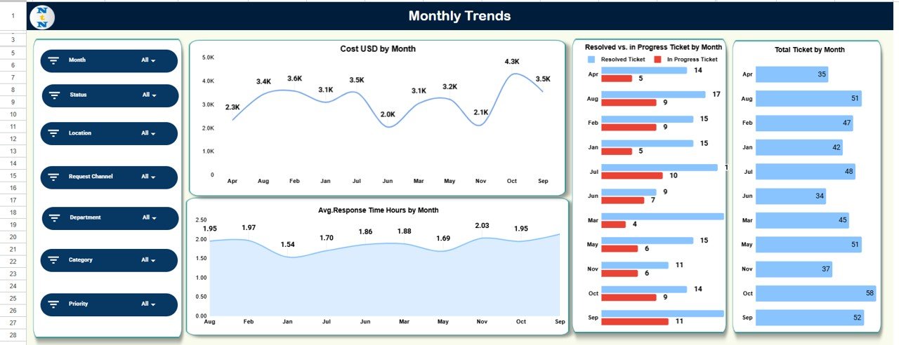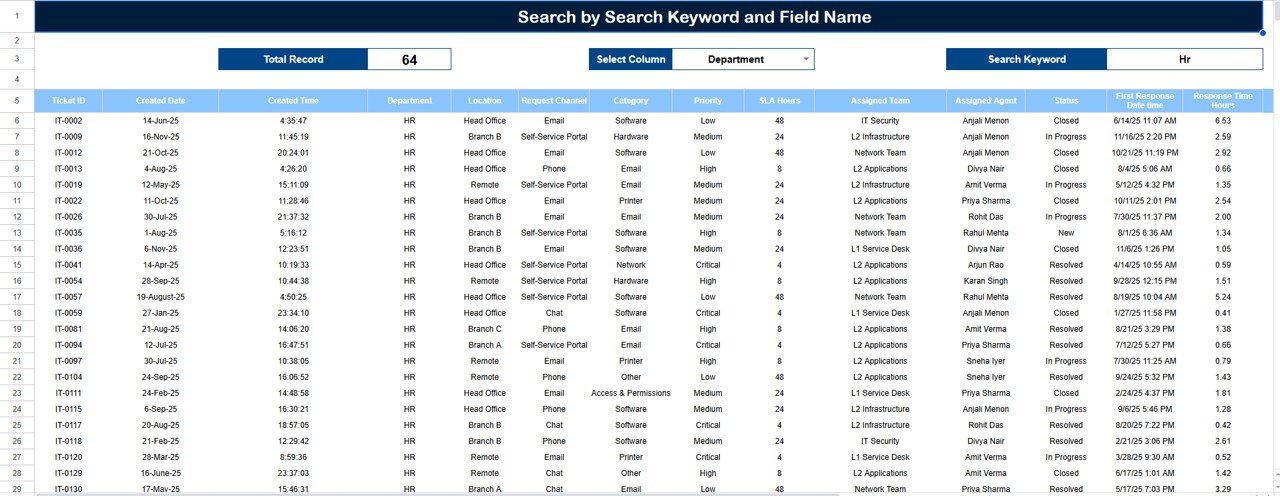 This ready-to-use dashboard helps IT teams track all helpdesk tickets, costs, response times, and resolution performance in one centralized and visual system. Instead of manually compiling reports, IT managers gain instant insights into ticket workload, bottlenecks, and performance trends. With automated calculations, interactive charts, and a smart search feature, this dashboard transforms raw ticket data into actionable intelligence.