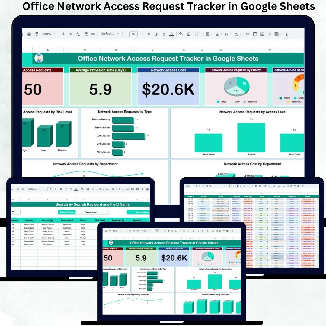 The Office Network Access Request Tracker in Google Sheets transforms scattered access requests into a secure, controlled, and auditable process. It gives IT and security teams complete visibility into access demand, risk levels, provisioning efficiency, and cost impact. Because it is cloud-based, flexible, and easy to use, it becomes a must-have tool for secure IT operations.