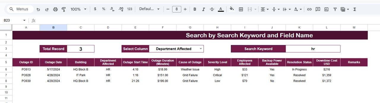 📦 What’s Inside the Office Power Outage Report Tracker in Google Sheets