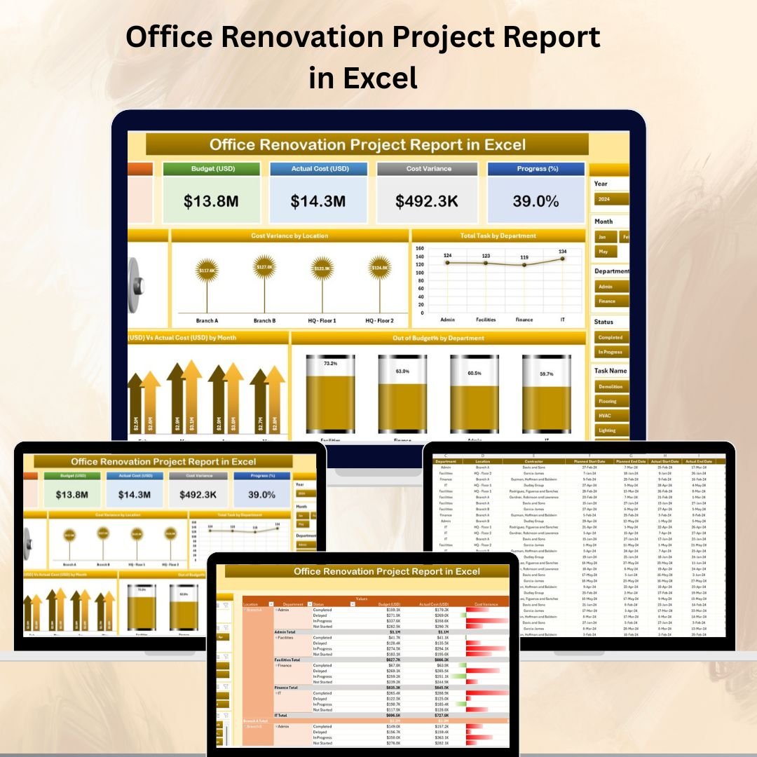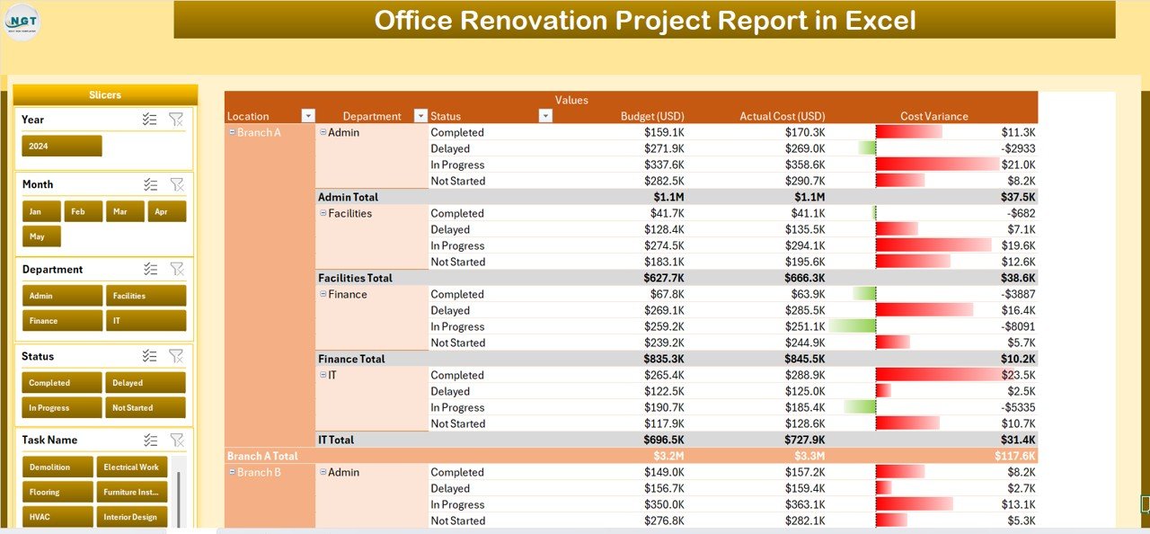 Apply Filters – Use slicers to focus on specific departments, locations, or phases.