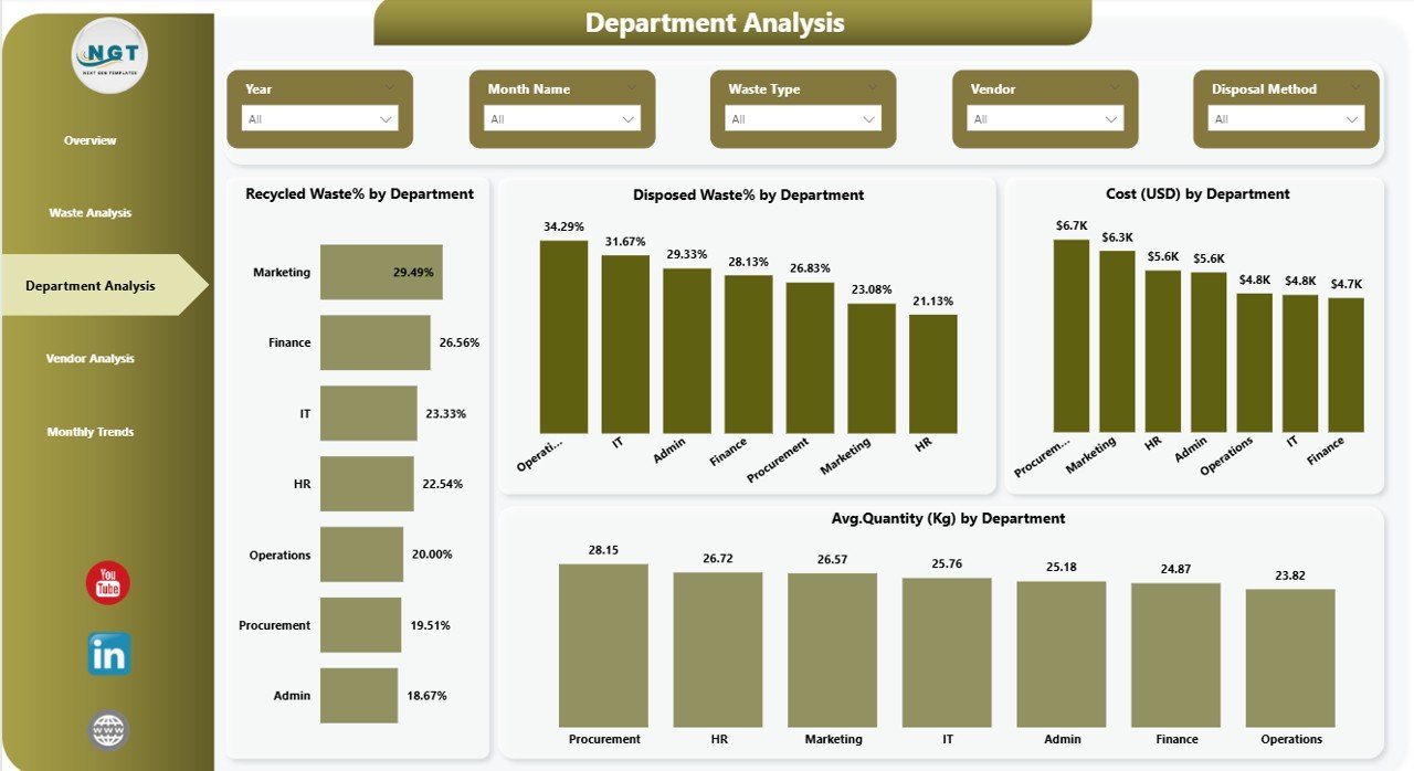Filter by Department, Waste Type, Vendor, or Month in seconds.