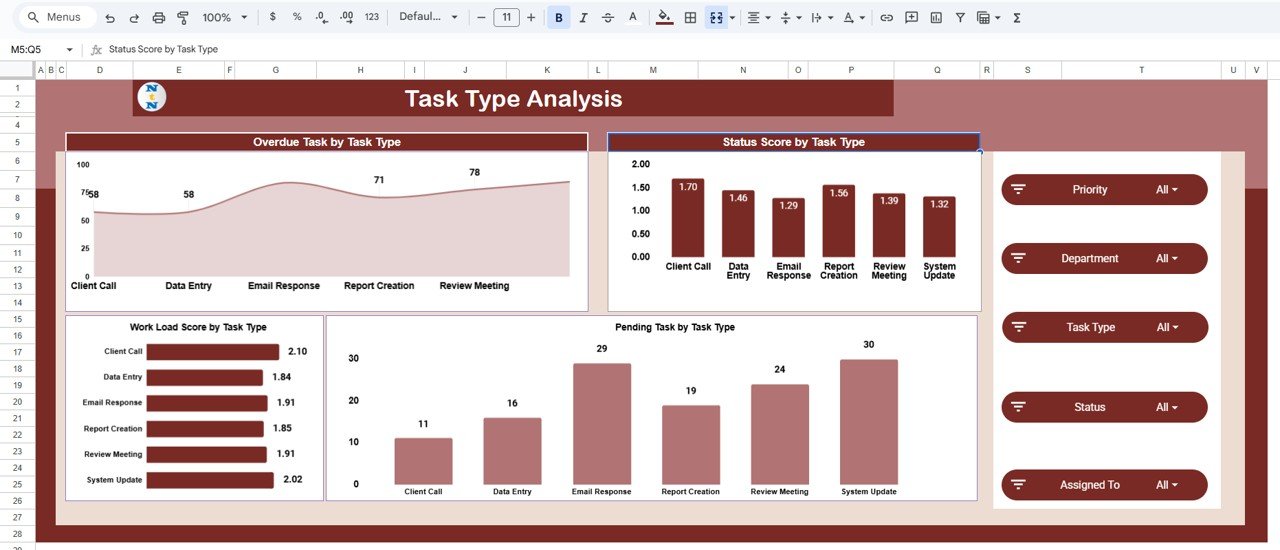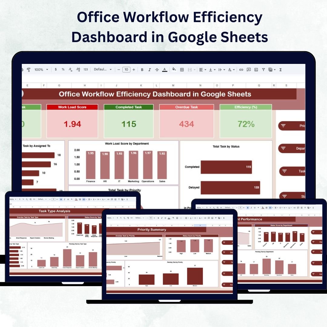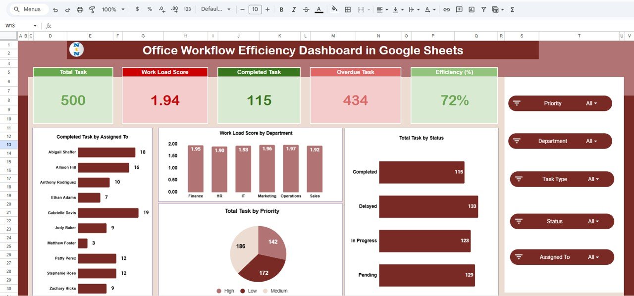 🔑 Key Features of the Office Workflow Efficiency Dashboard in Google Sheets