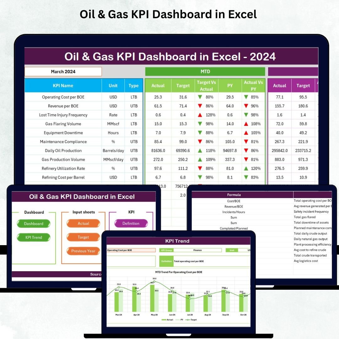 📦 What’s Inside the Oil & Gas KPI Dashboard in Excel