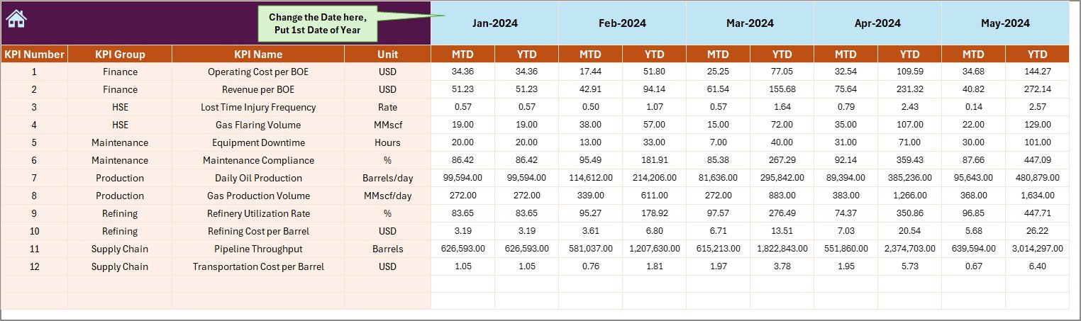 🛠 How to Use the Oil & Gas KPI Dashboard in Excel