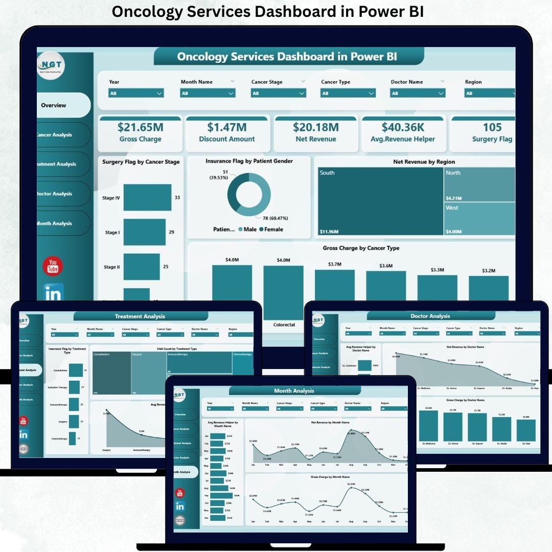 🧬 Centralized Oncology Performance View – Monitor cancer services, treatments, doctors, revenue, and trends in one interactive dashboard.