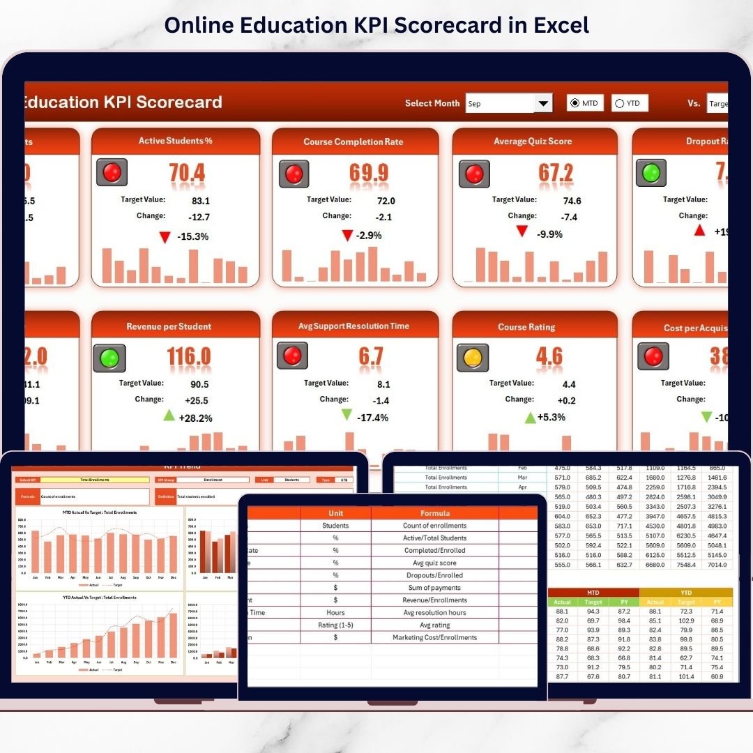 📦 What’s Inside the Online Education KPI Scorecard in Excel