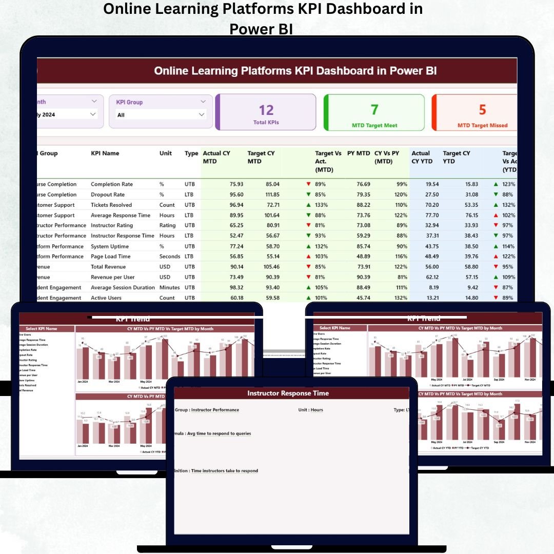 ✨ Key Features of the Online Learning Platforms KPI Dashboard in Power BI