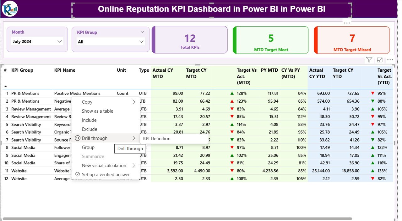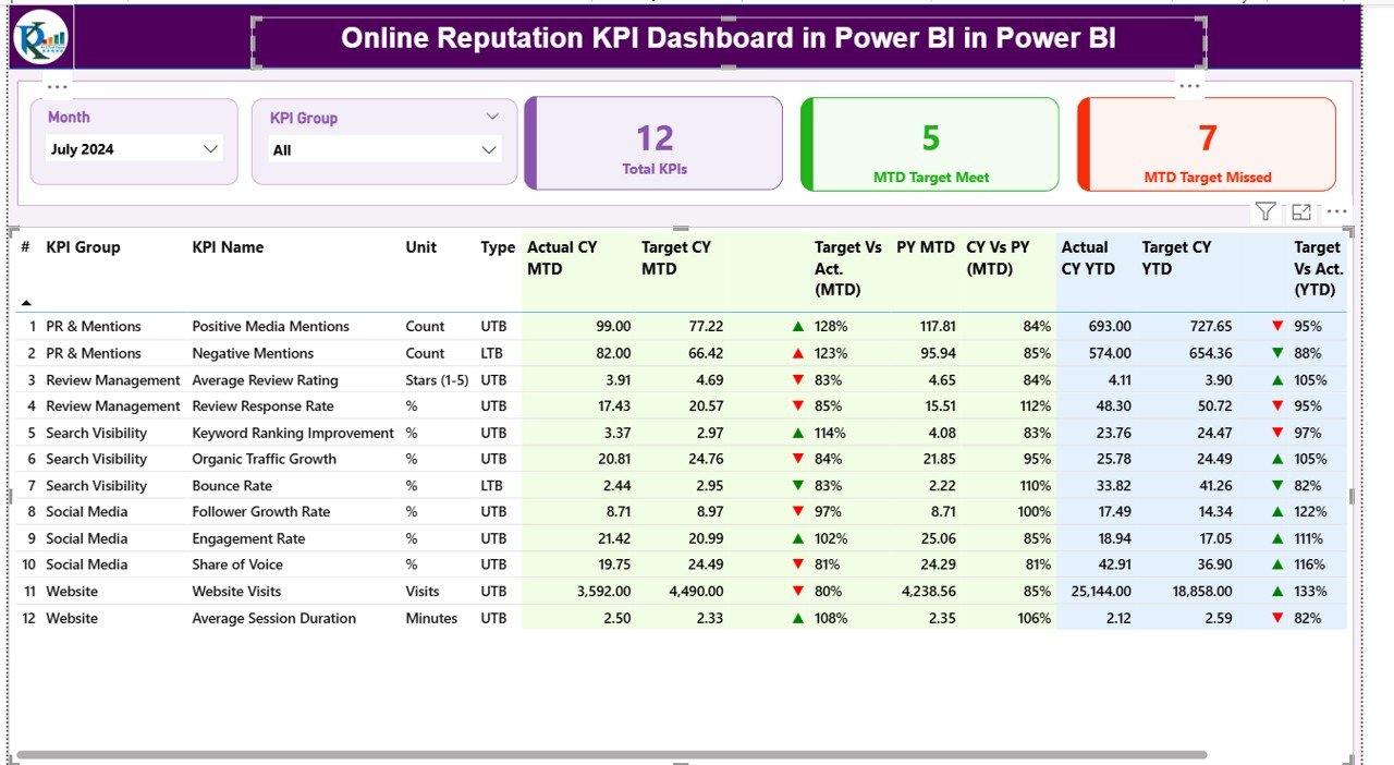 📦 What’s Inside the Online Reputation KPI Dashboard in Power BI