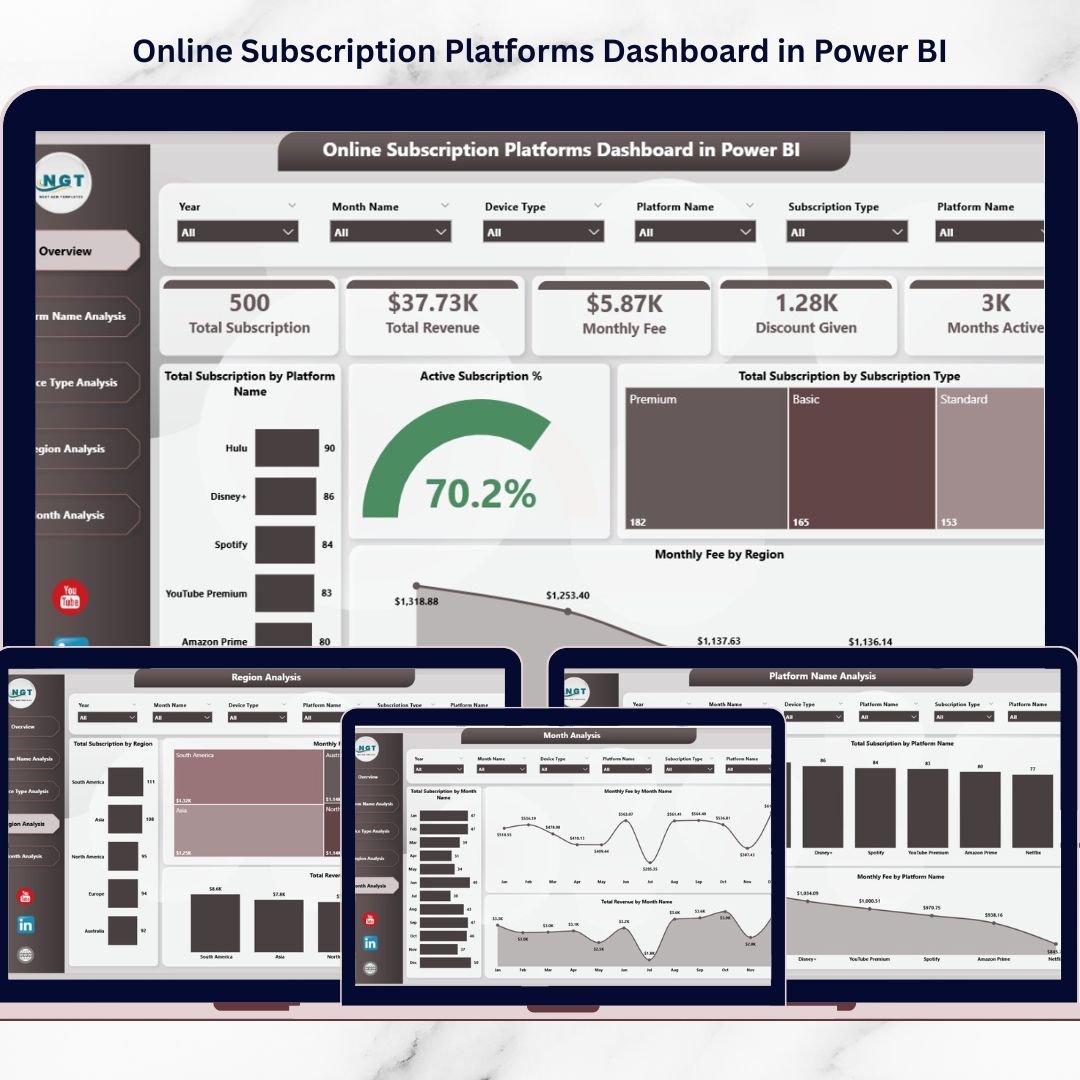 🔄 Dynamic Slicers & Filters – Instantly filter by platform, region, device type, subscription type, and month.