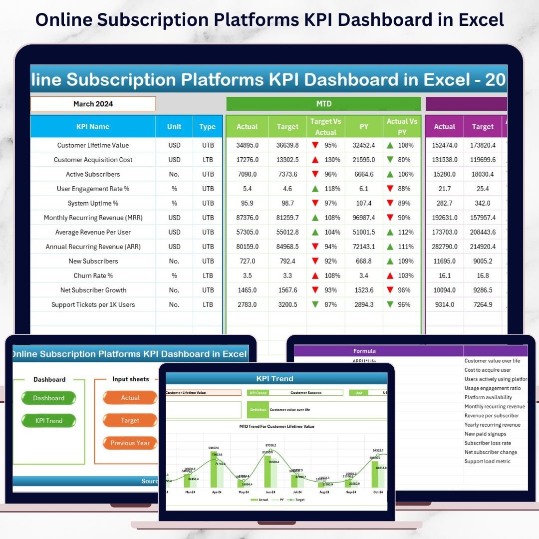📦 What’s Inside the Online Subscription Platforms KPI Dashboard in Excel