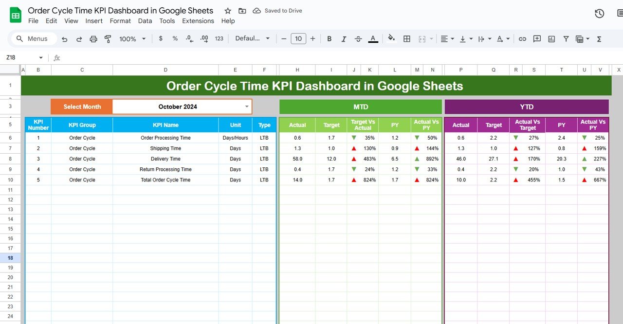 Everything is designed to reduce manual effort and provide accurate, real-time order analytics.Order Cycle Time KPI Dashboard in Google Sheets