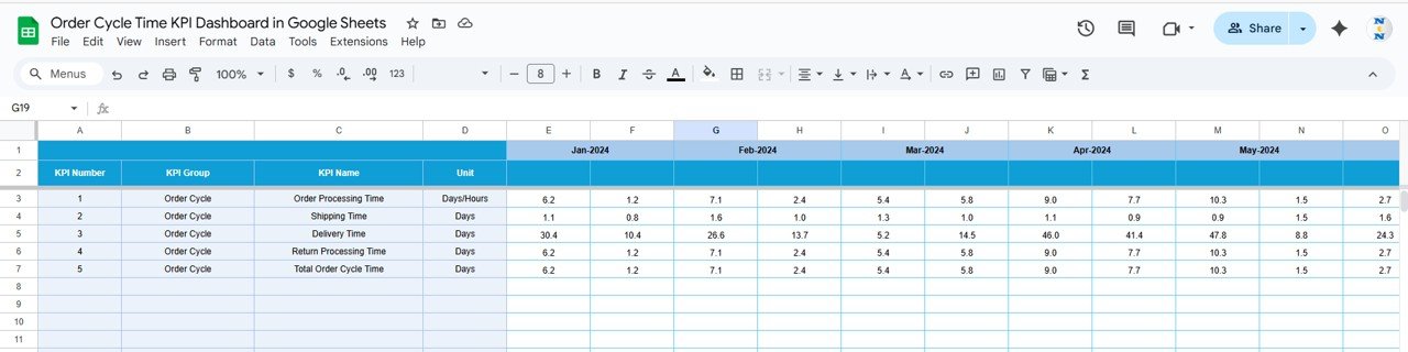 📦 What’s Inside the Order Cycle Time KPI Dashboard in Google Sheets