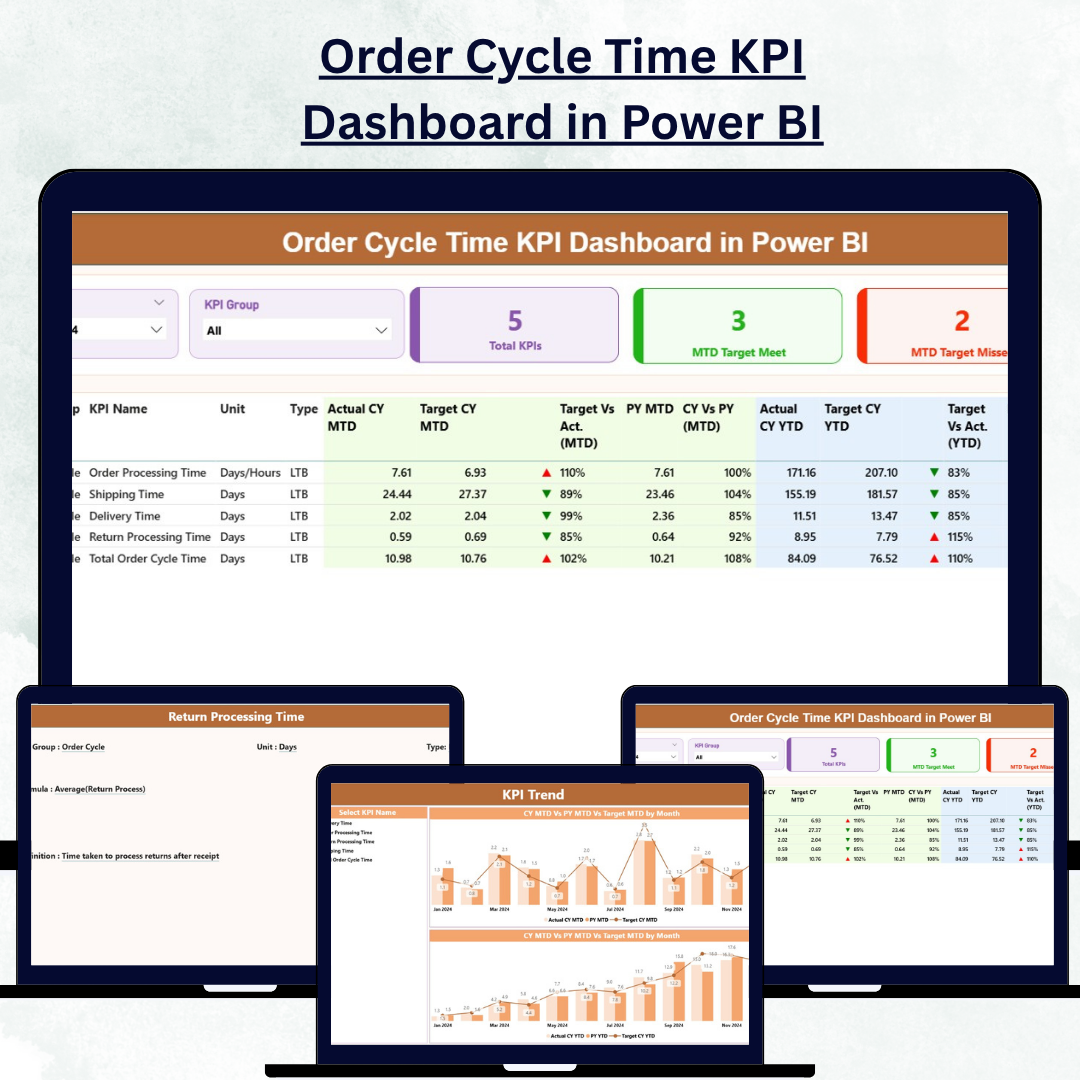 The Order Cycle Time KPI Dashboard in Power BI is more than just a reporting tool — it’s a performance accelerator. By integrating Excel-based KPI data into an automated, visual, and interactive Power BI report, it empowers organizations to measure, analyze, and improve order processing efficiency effortlessly.