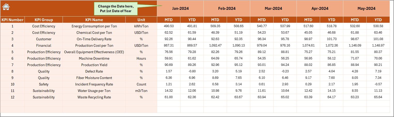 🧭 How to Use the Paper and Pulp KPI Dashboard in Excel