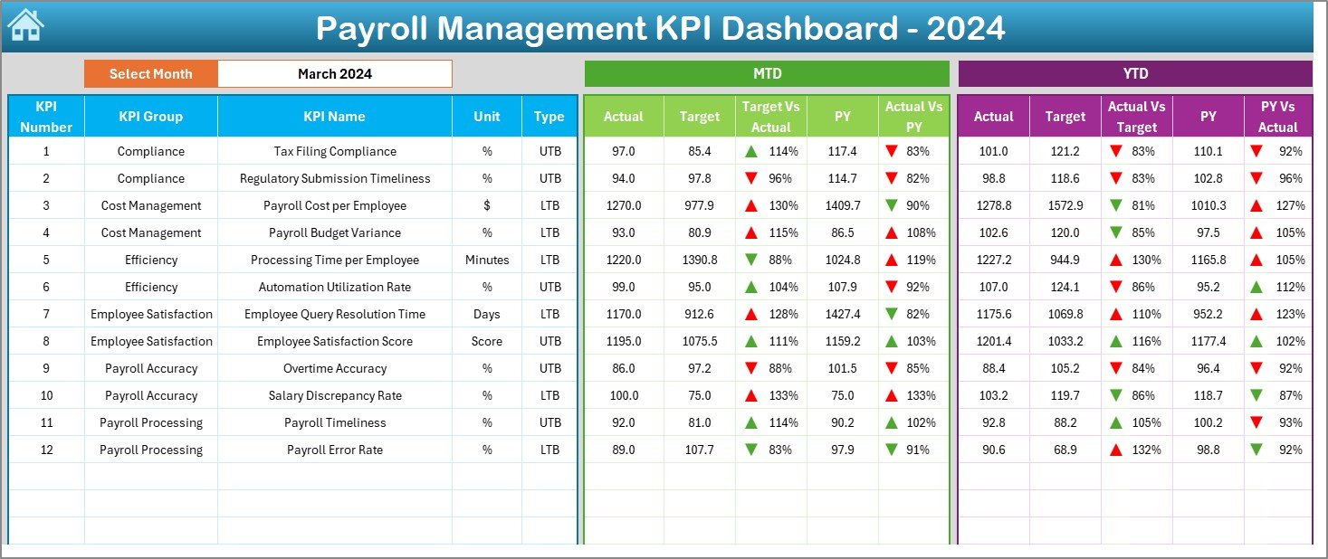 📦 What’s Inside the Payroll Management KPI Dashboard