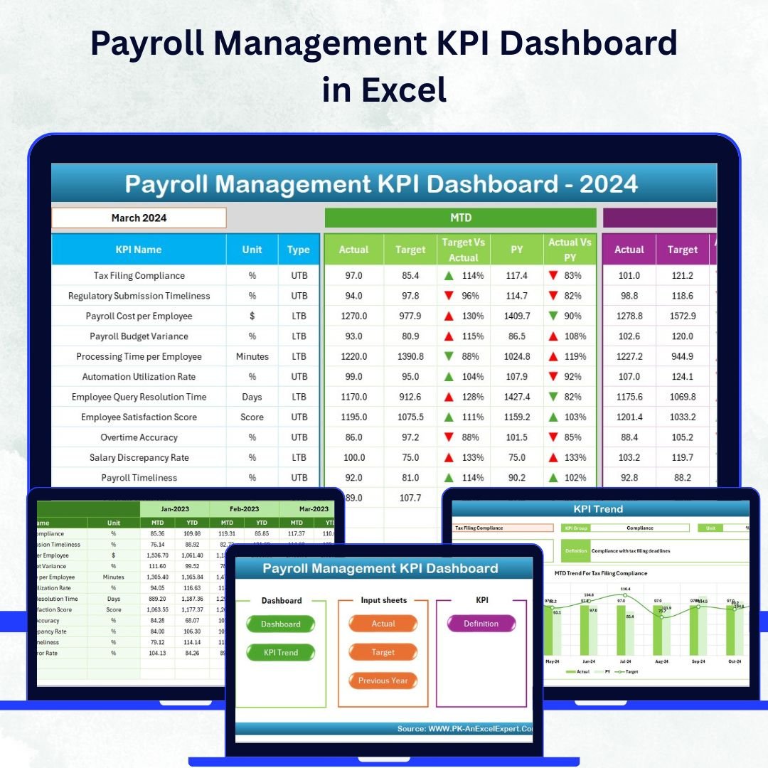 Managing payroll efficiently is critical for every organization — accuracy, timeliness, and compliance directly impact employee satisfaction and business performance. 💼 That’s why the Payroll Management KPI Dashboard in Excel is your one-stop solution for tracking, analyzing, and optimizing payroll operations — all within a single, automated Excel workbook.