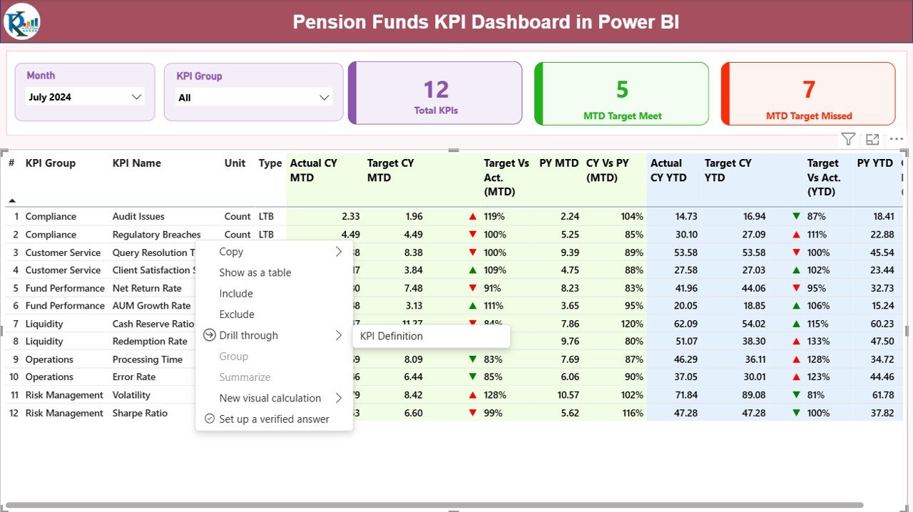 ## ✅ Key Features of Pension Funds KPI Dashboard in Power BI