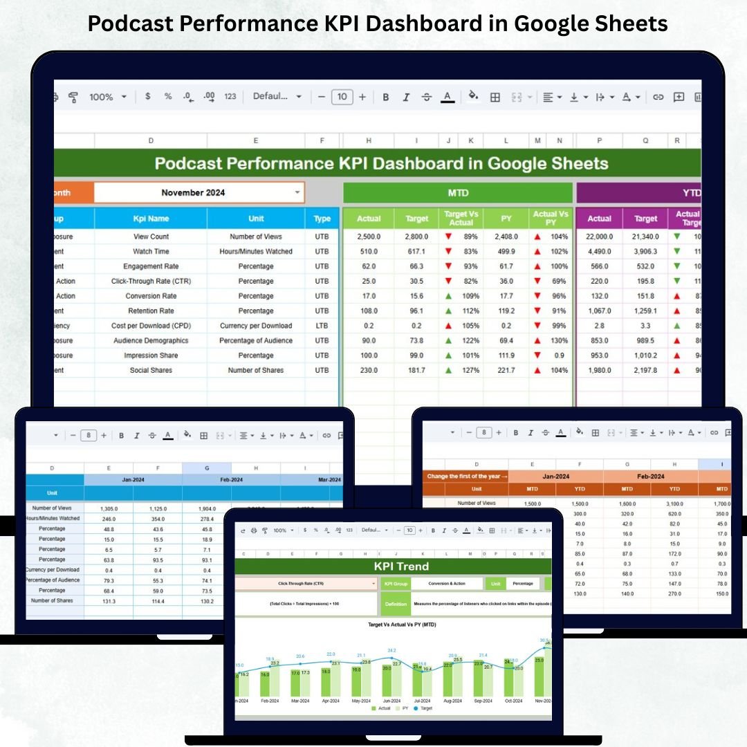 ✨ Key Features of the Podcast Performance KPI Dashboard in Google Sheets