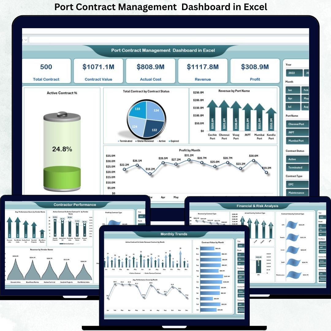Managing Port Contract Management Dashboard in Excel is a high-risk and high-value responsibility. Port contracts involve long durations, large financial commitments, multiple vendors, strict timelines, and ongoing operational exposure. Port authorities, logistics companies, and infrastructure operators must constantly monitor contract performance to avoid cost overruns, renewal delays, and profitability losses. However, when contract data is scattered across Excel files, emails, and manual reports, visibility decreases and decision-making becomes reactive.Port Contract Management Dashboard in Excel