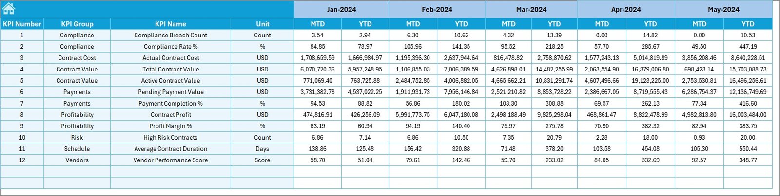 Because it is built entirely in Excel, this solution requires no expensive BI tools, no technical setup, and no advanced Excel skills. You can deploy it immediately and start monitoring contract KPIs with confidence.