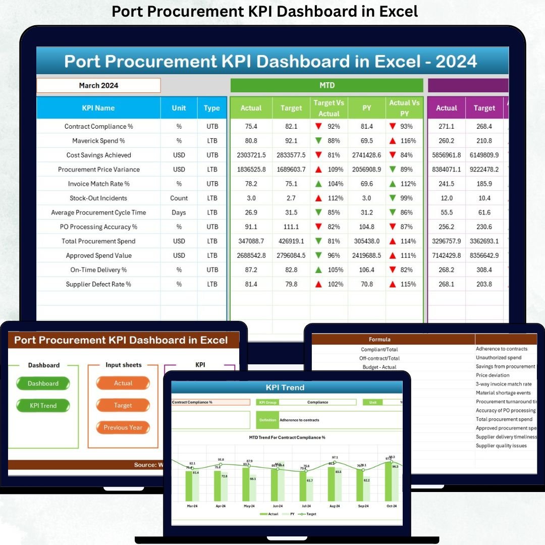 📦 What’s Inside the Port Procurement KPI Dashboard in Excel