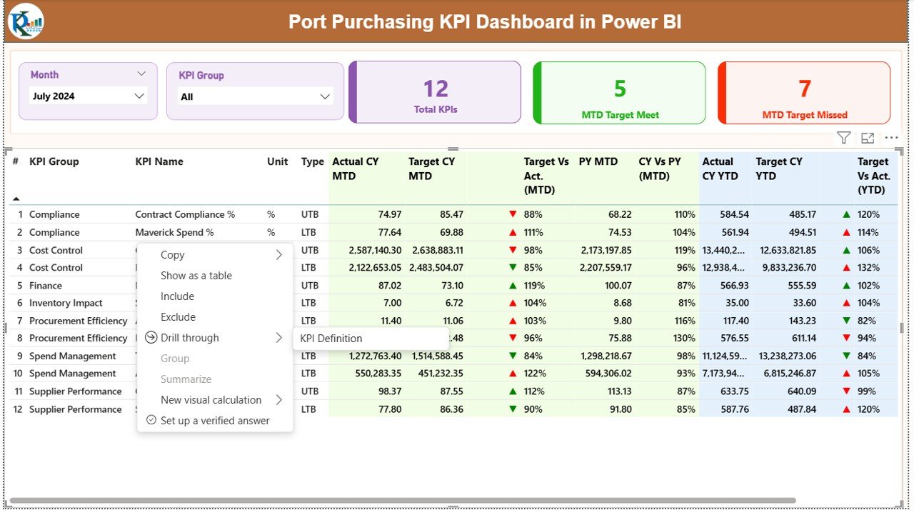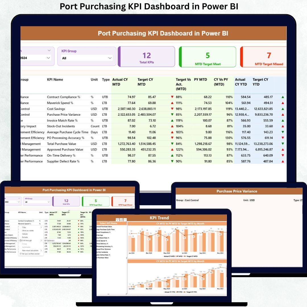 That’s where the Port Purchasing KPI Dashboard in Power BI becomes a game-changer.