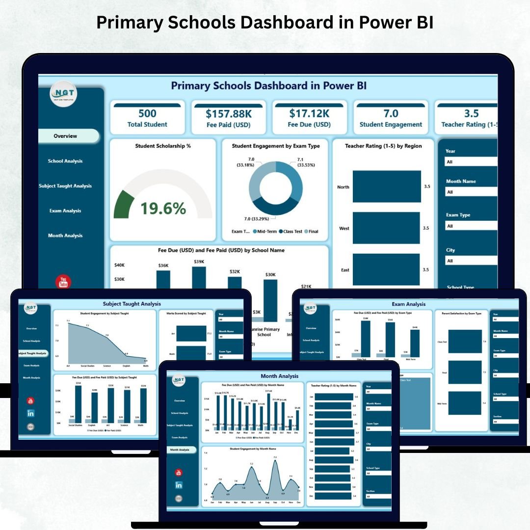 Running a primary school involves much more than classrooms and exams. School leaders must track student engagement, teacher performance, fee status, exam results, subject outcomes, parent satisfaction, and monthly academic patterns—every single day. When this information stays scattered across multiple files, decision-making becomes slow and unclear. That’s why the Primary Schools Dashboard in Power BI is the perfect solution for modern schools seeking clarity, speed, and organized reporting. 🎒📊